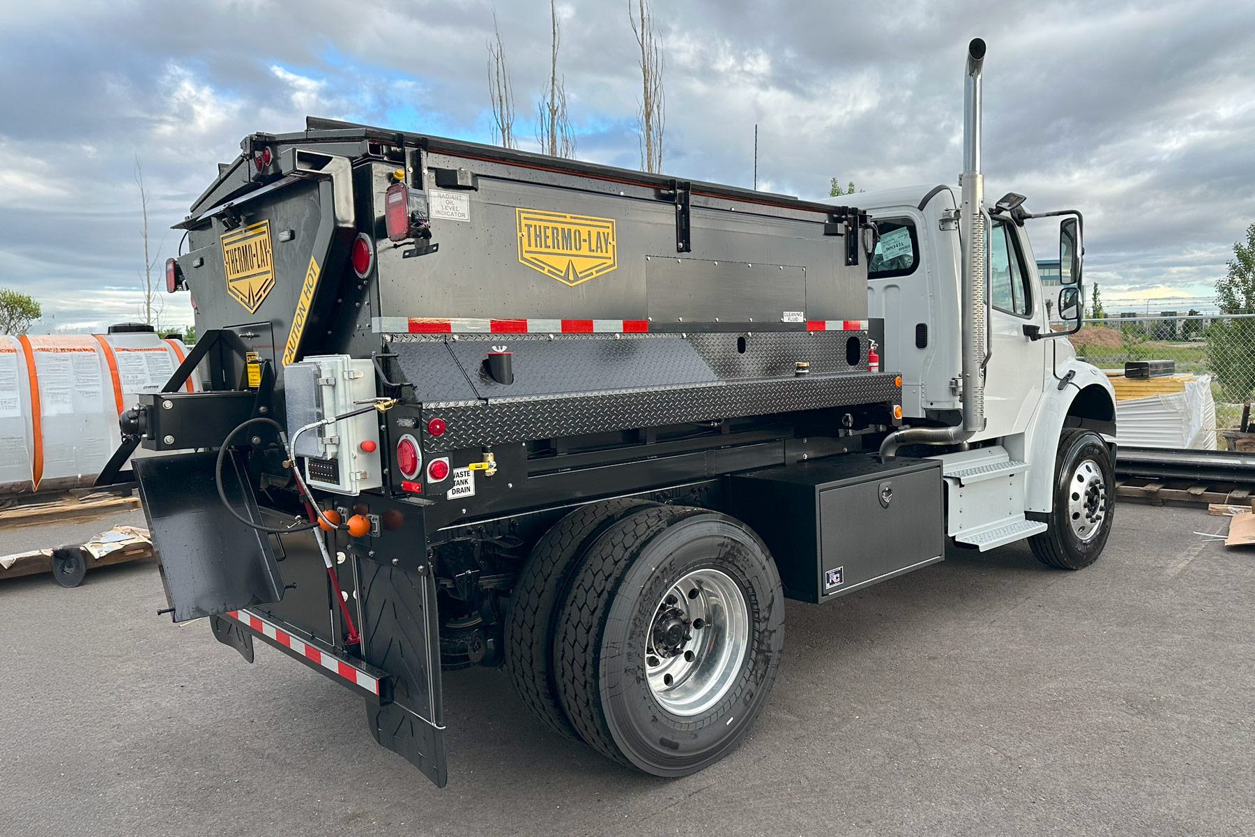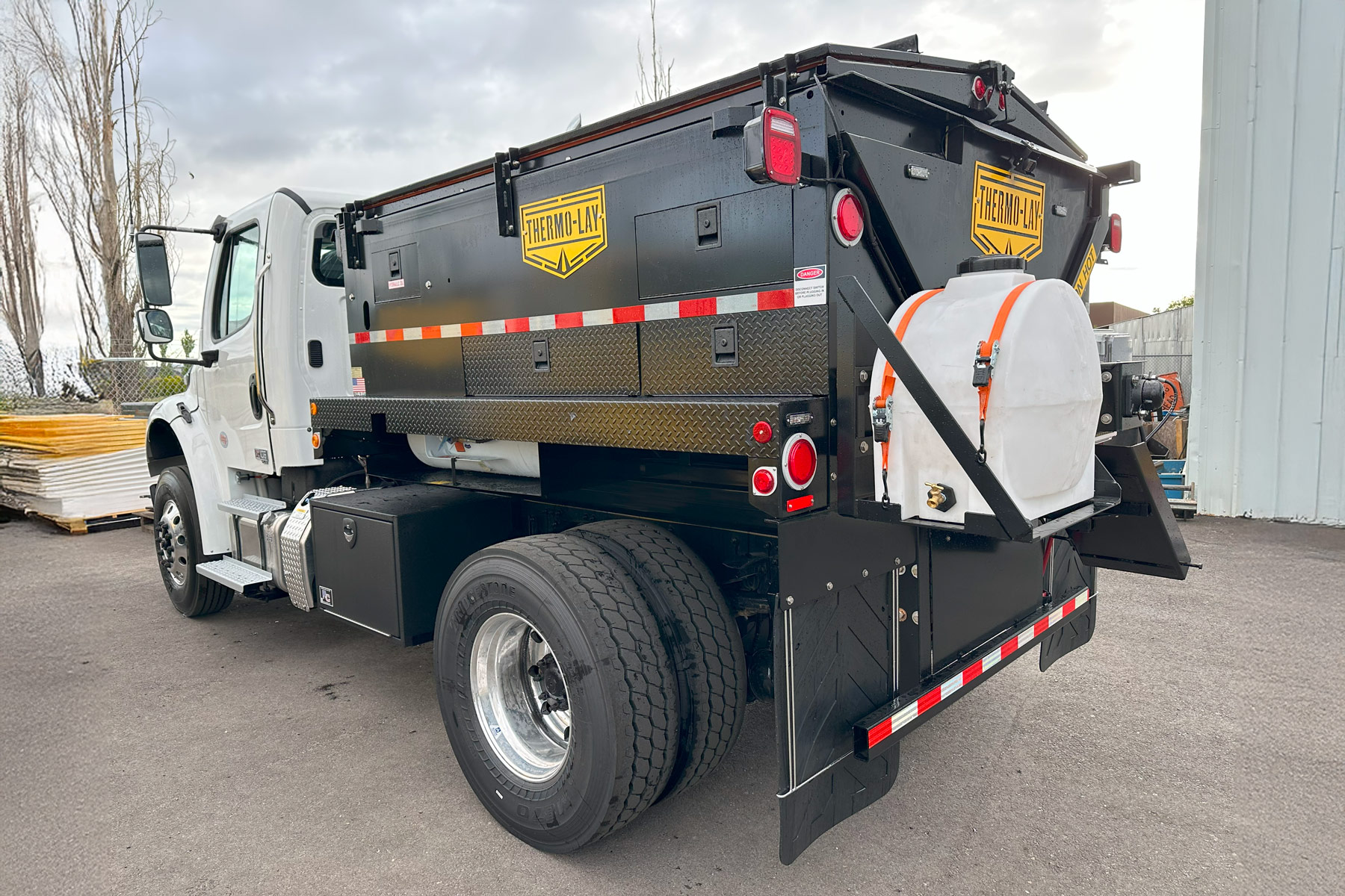 - Touchscreen control interfaces in cab and at tailgate, each with an e-stop