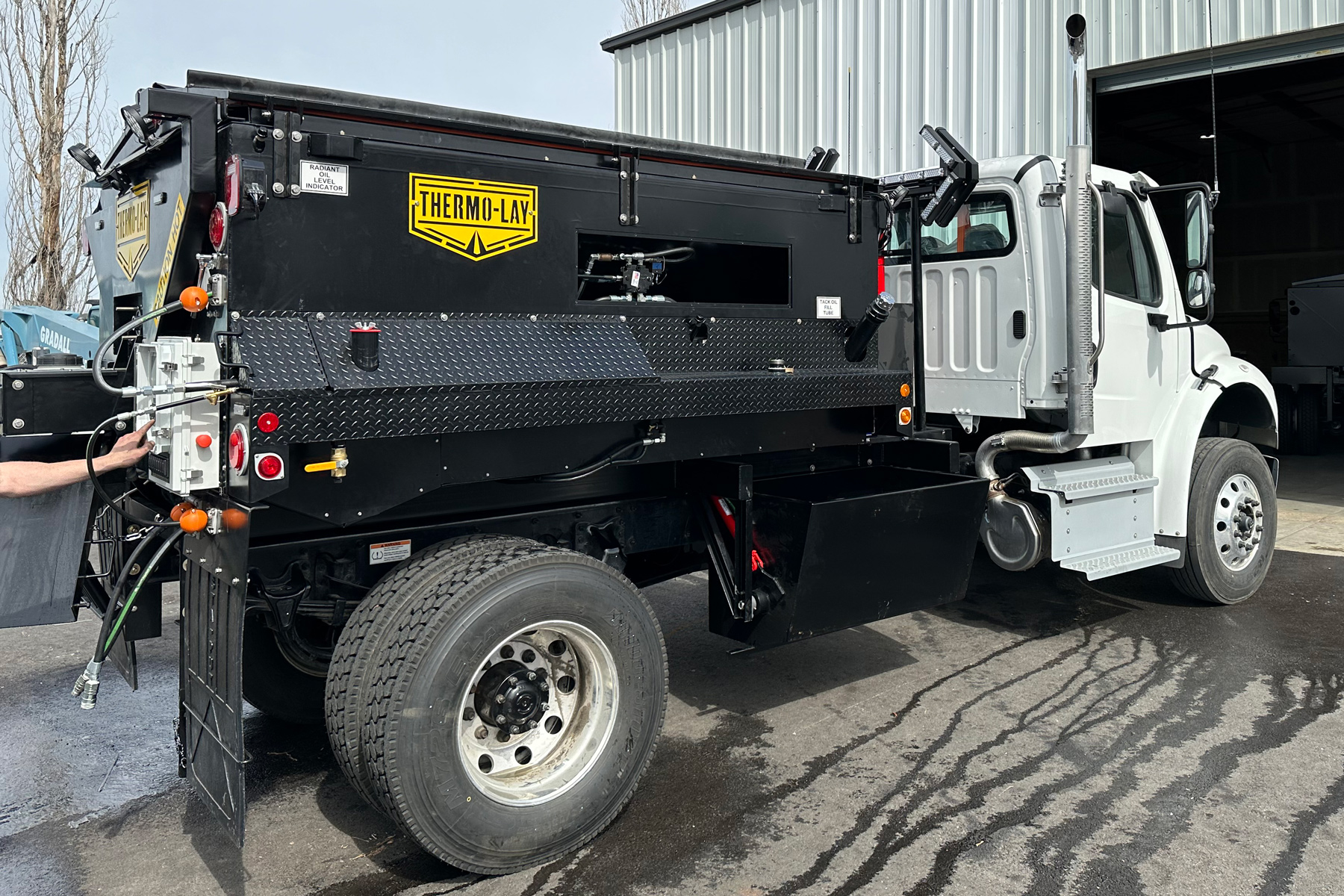 • Touchscreen control interfaces in cab and at tailgate, each with an e-stop