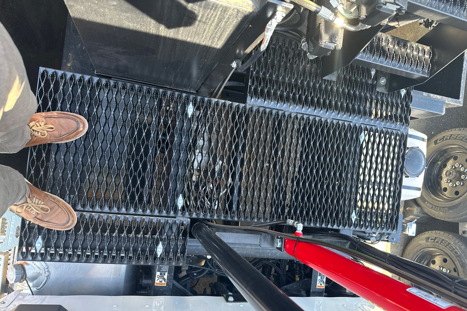 • Catwalk behind cab, with ladder to hopper